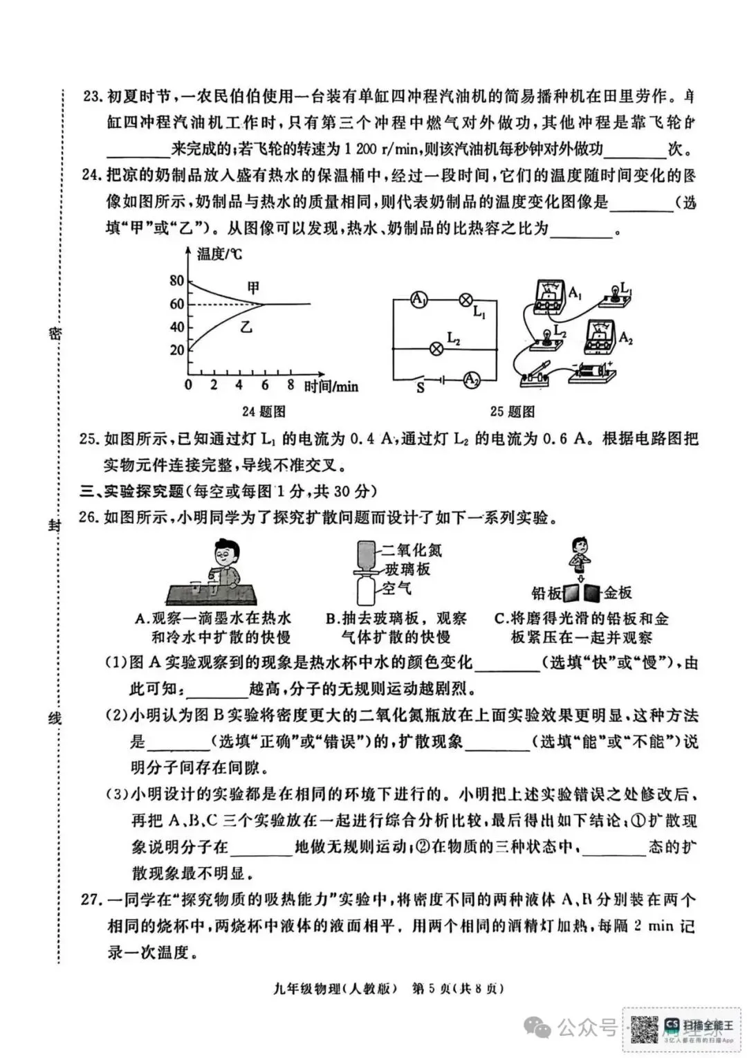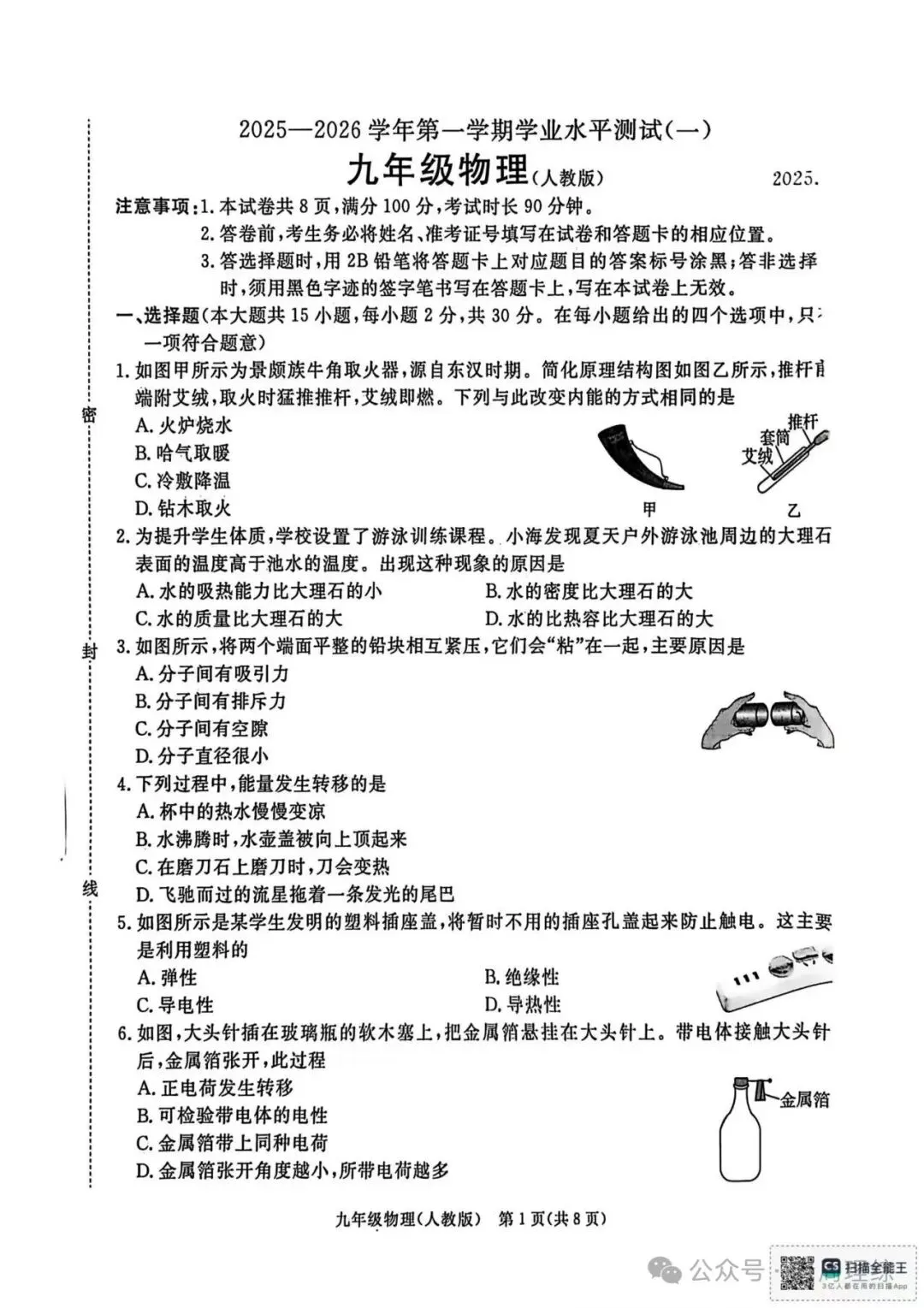 >2025河北省廊坊市大厂县初三上学期第一次月考物理试卷