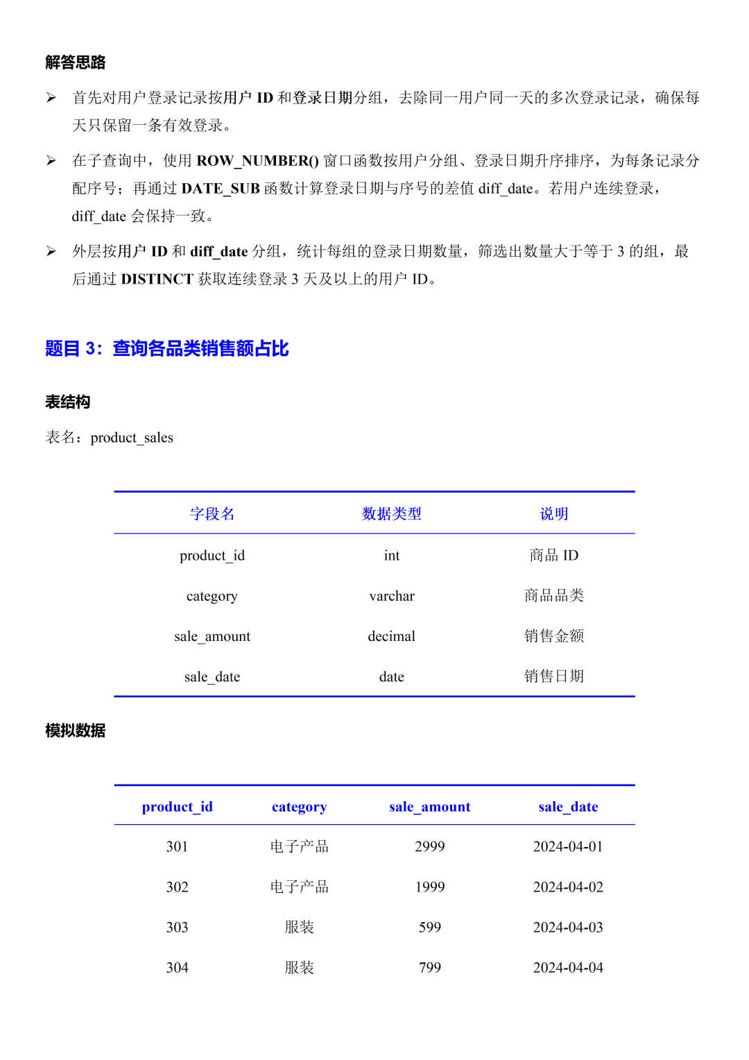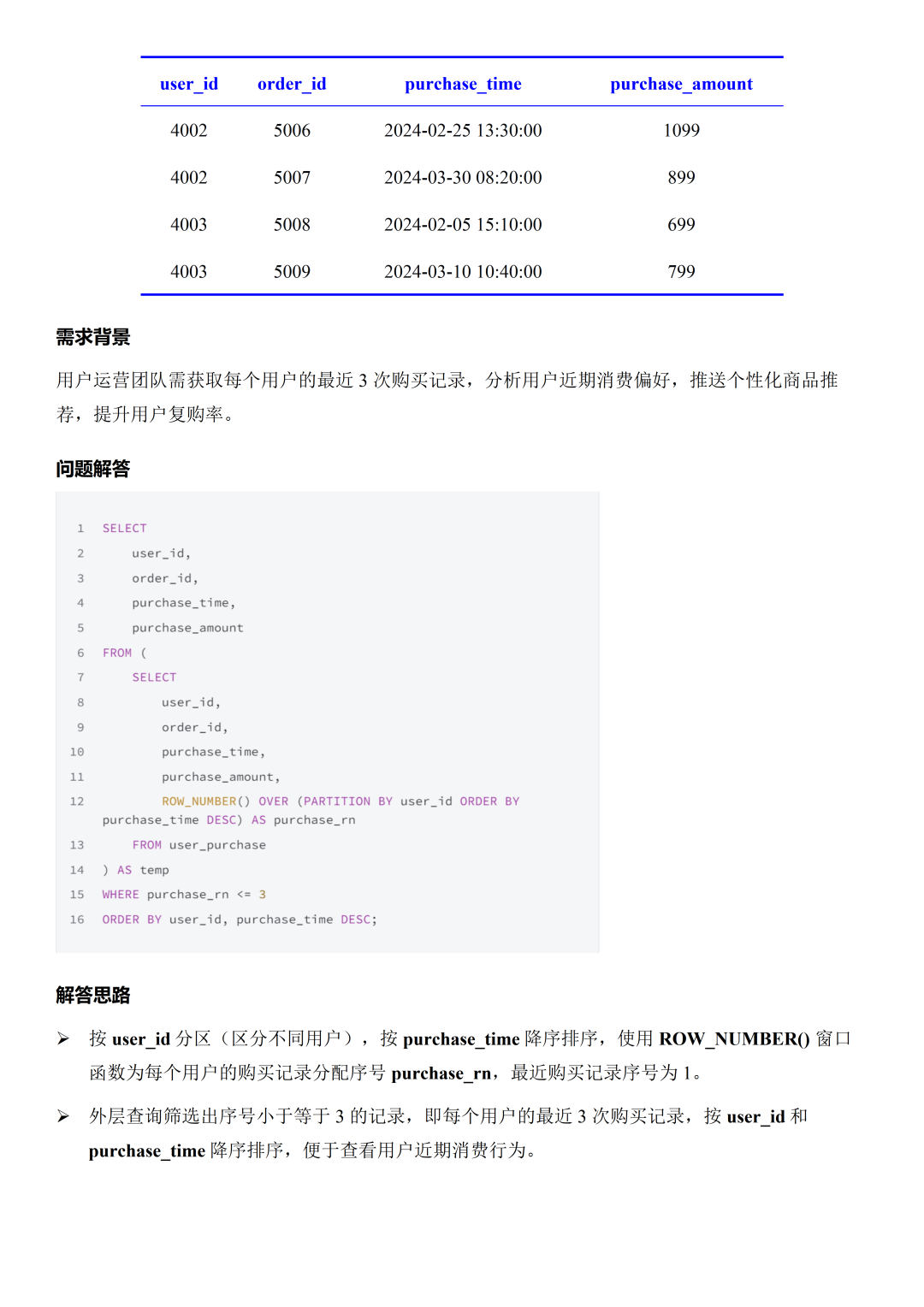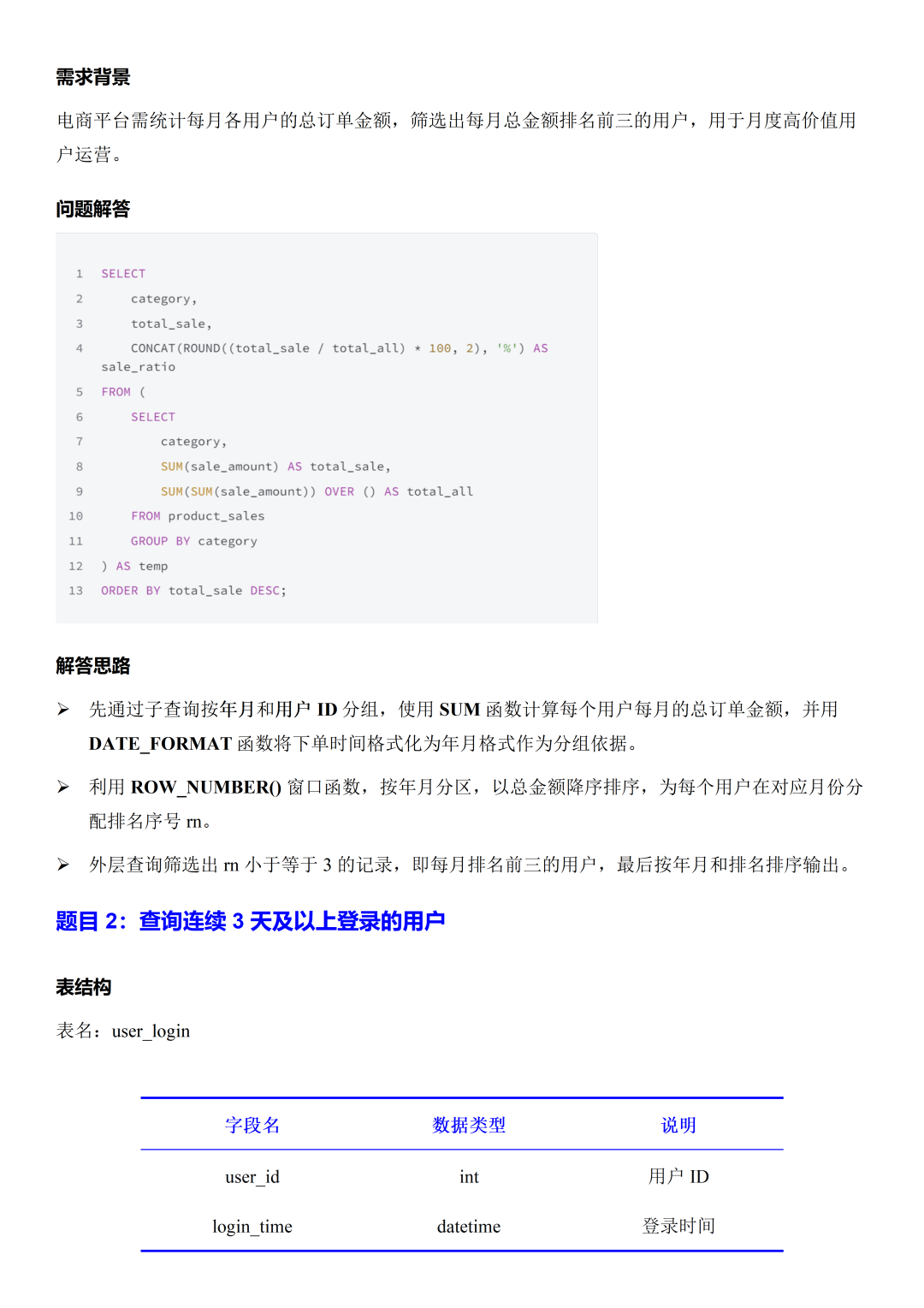 出于对行业痛点的深刻洞察,接下来我将以大厂真实业务逻辑为依托,为大家系统整理SQL 高频场景题。每一道题目都经过精心设计,包含五大核心维度:清晰的表结构定义、贴合业务的模拟数据、真实的需求背景阐述、完整的问题解答代码以及深入浅出的解答思路剖析。