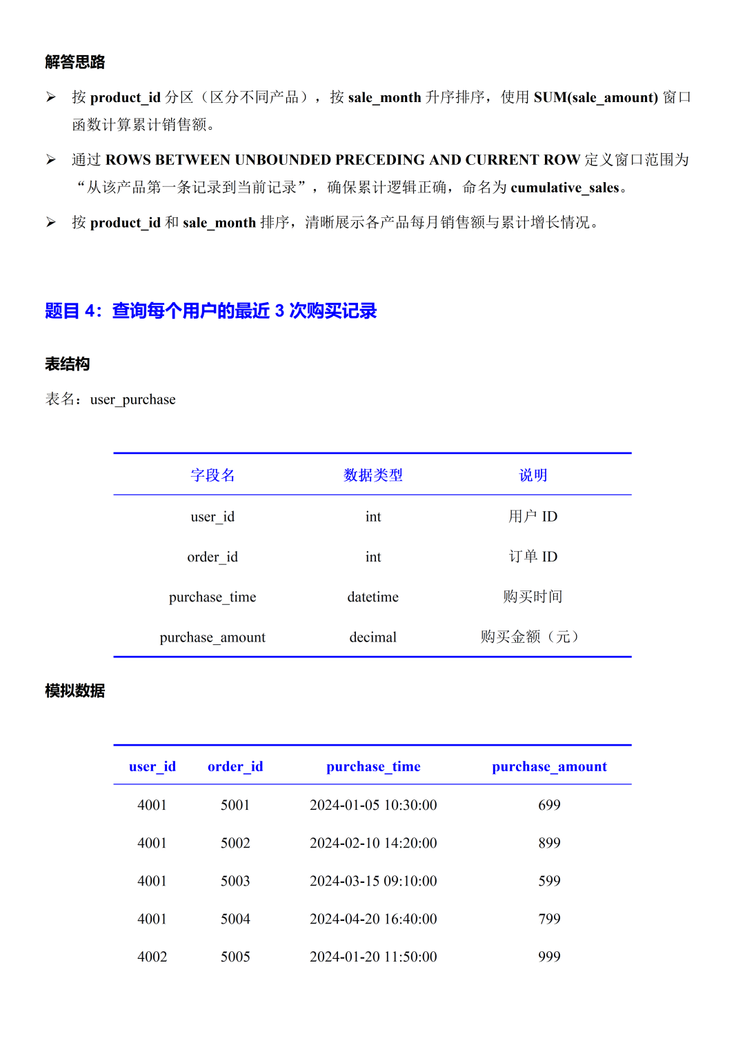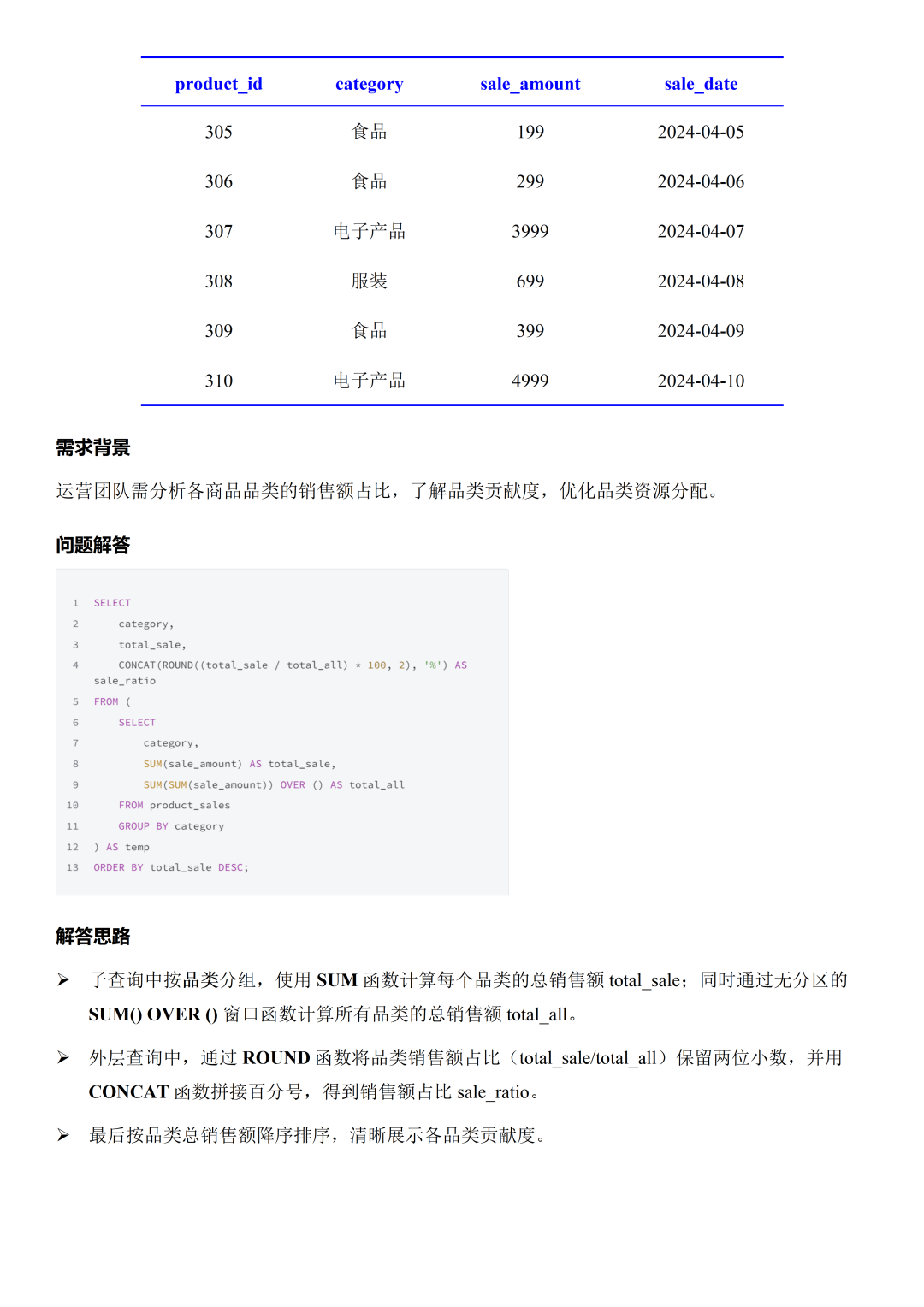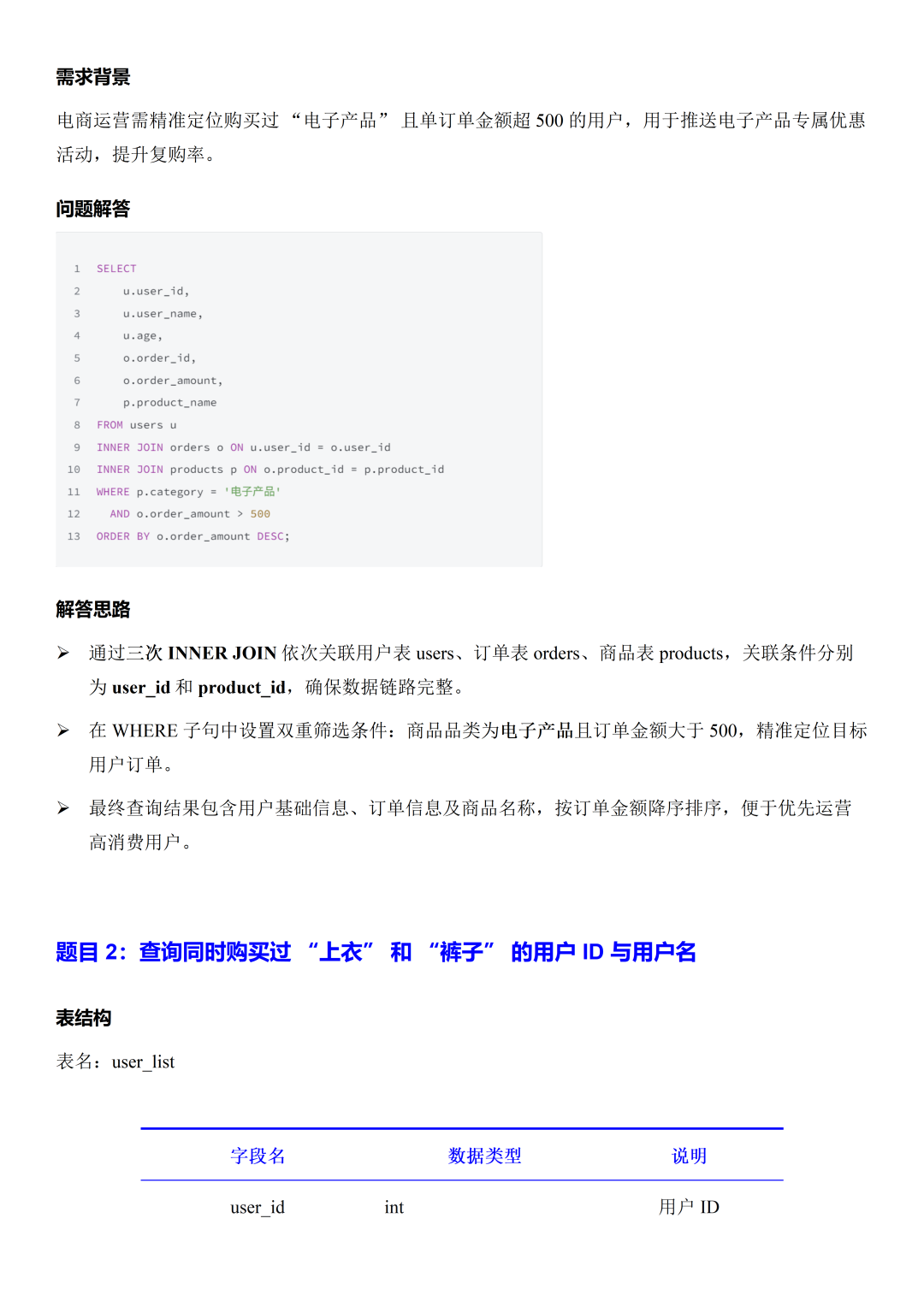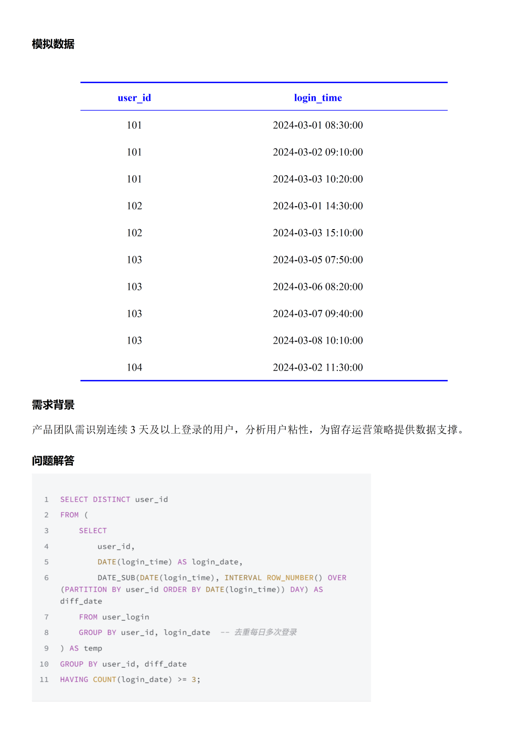 出于对行业痛点的深刻洞察,接下来我将以大厂真实业务逻辑为依托,为大家系统整理SQL 高频场景题。每一道题目都经过精心设计,包含五大核心维度:清晰的表结构定义、贴合业务的模拟数据、真实的需求背景阐述、完整的问题解答代码以及深入浅出的解答思路剖析。