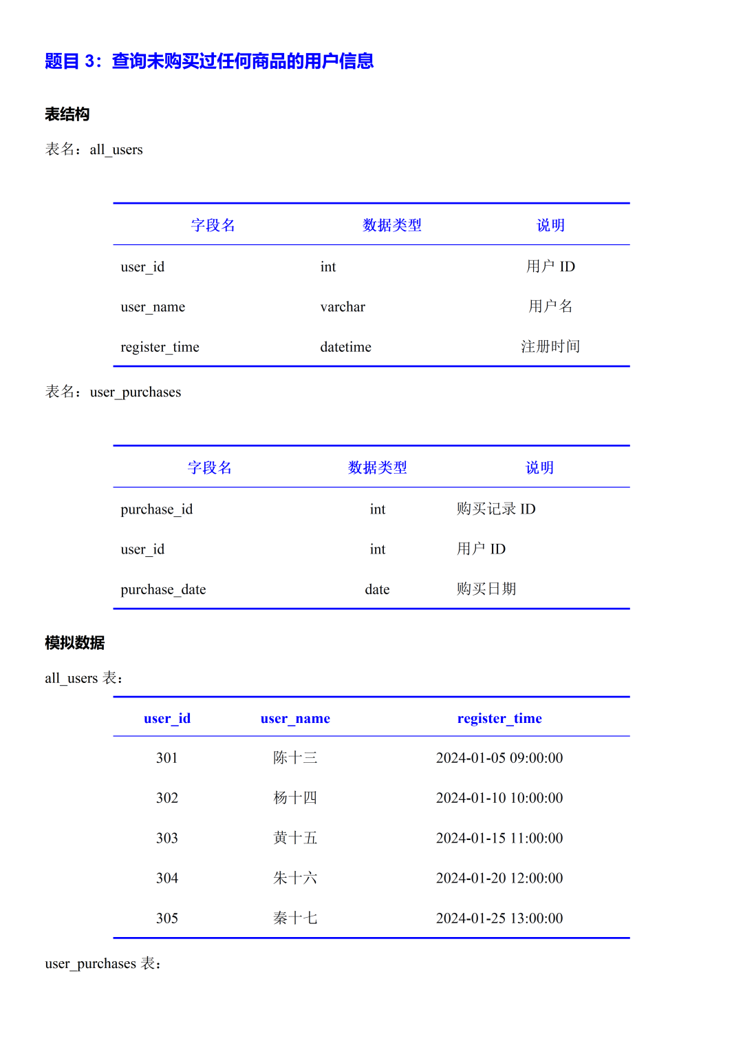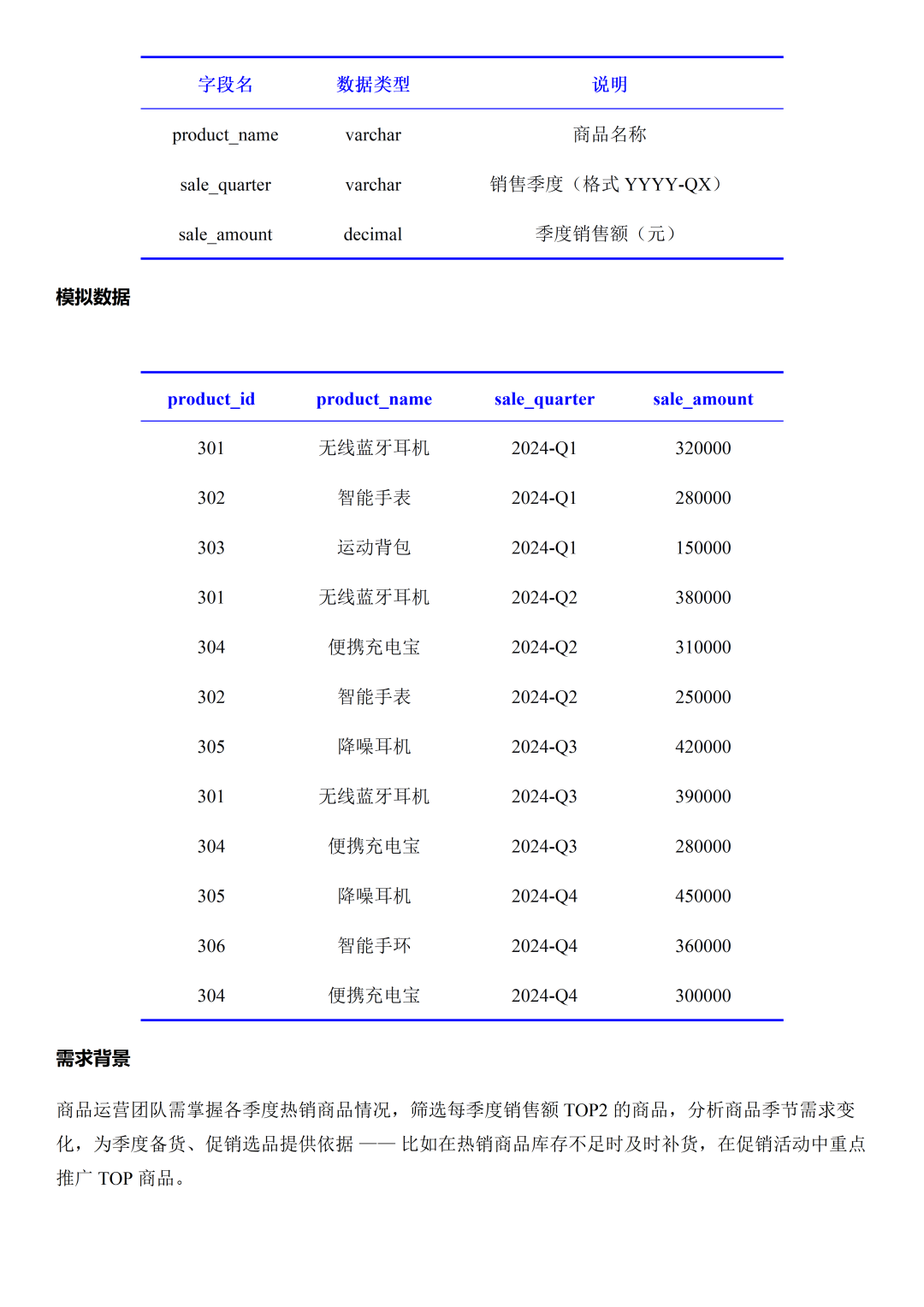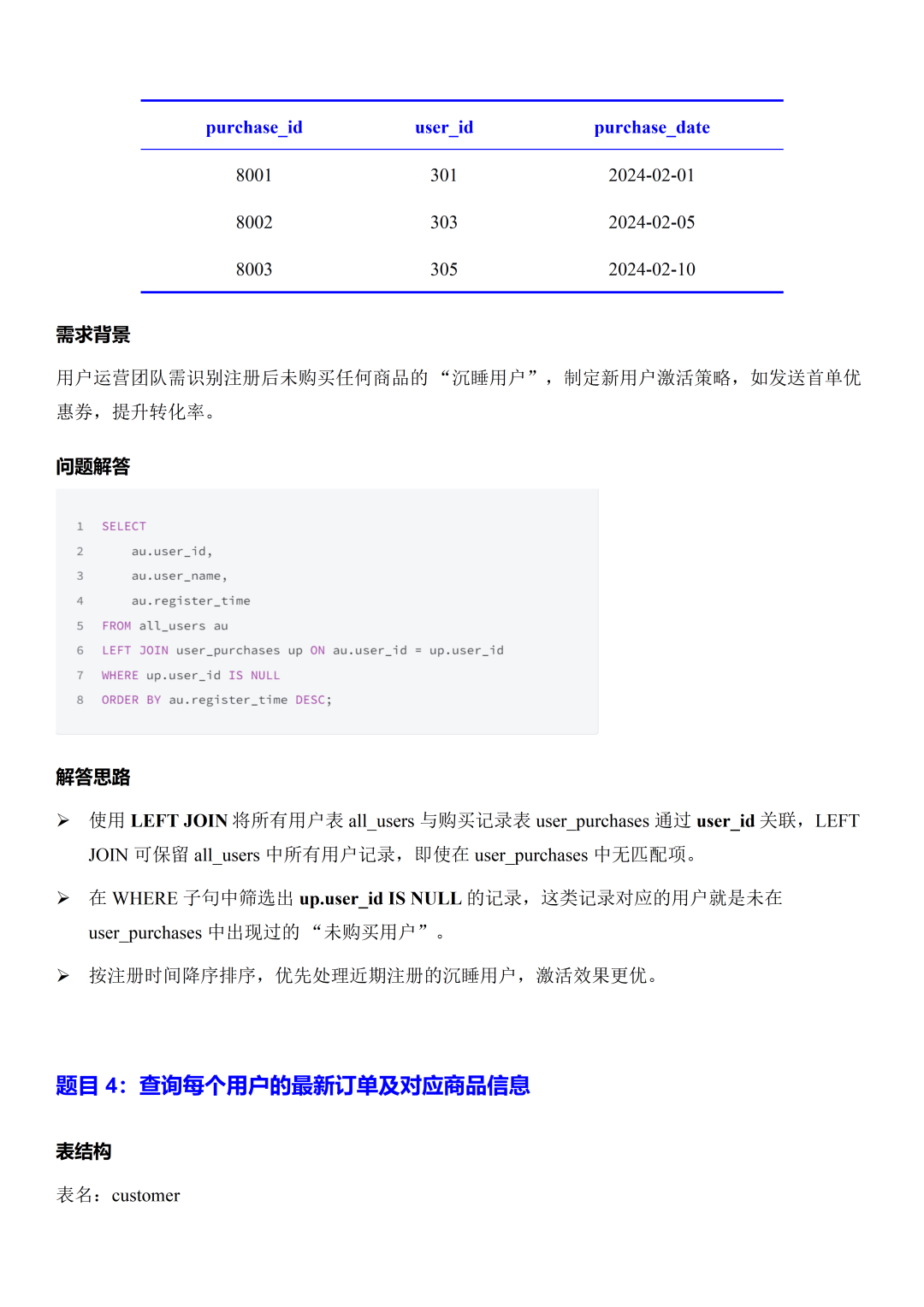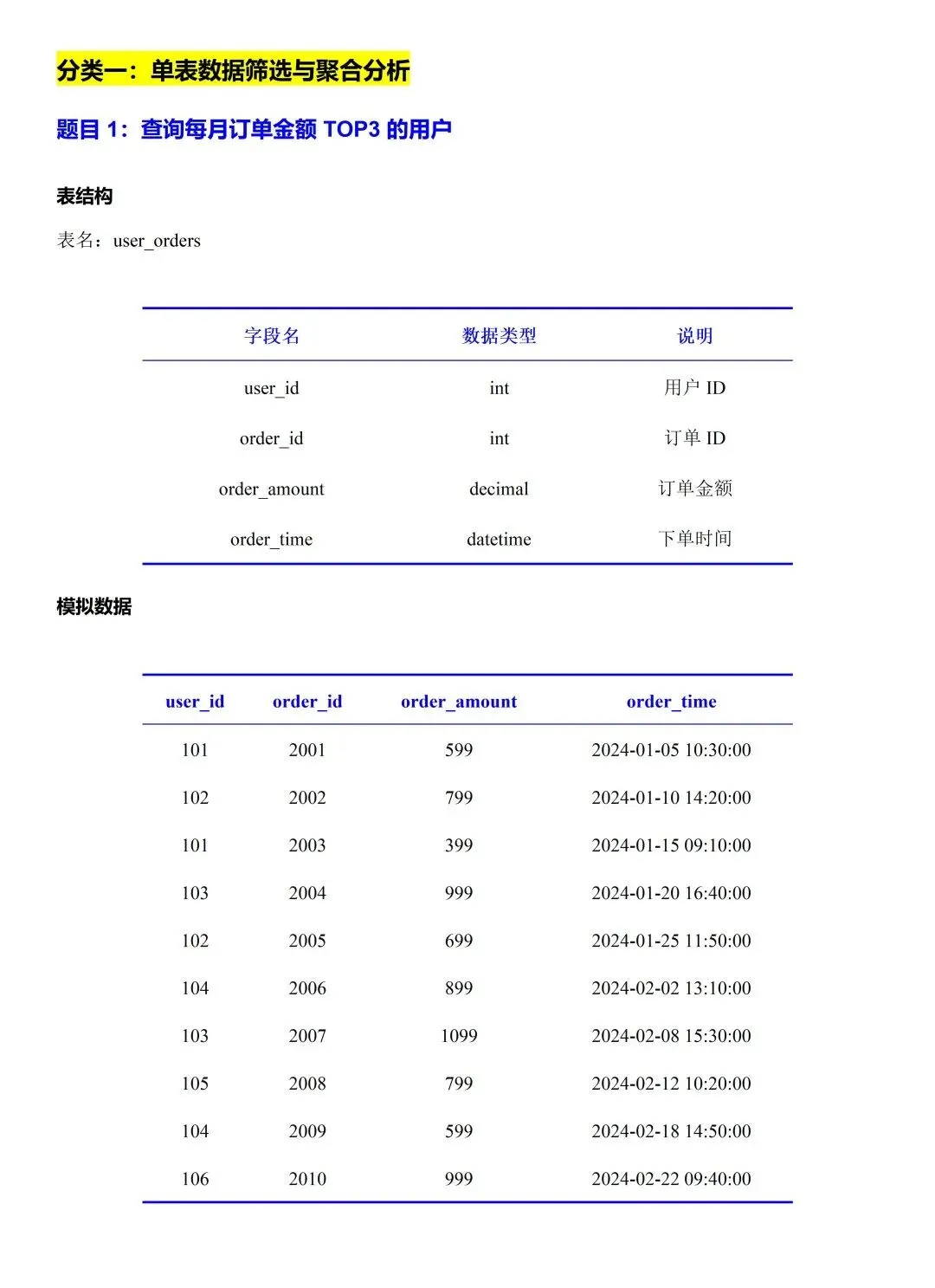 希望通过这套场景题,帮助大家真正打通SQL从 "会用语法" 到 "能解业务" 的关键堵点,不管是应对面试时的场景化考题,还是处理工作里的实际数据需求,都能轻松应对、不慌不乱。