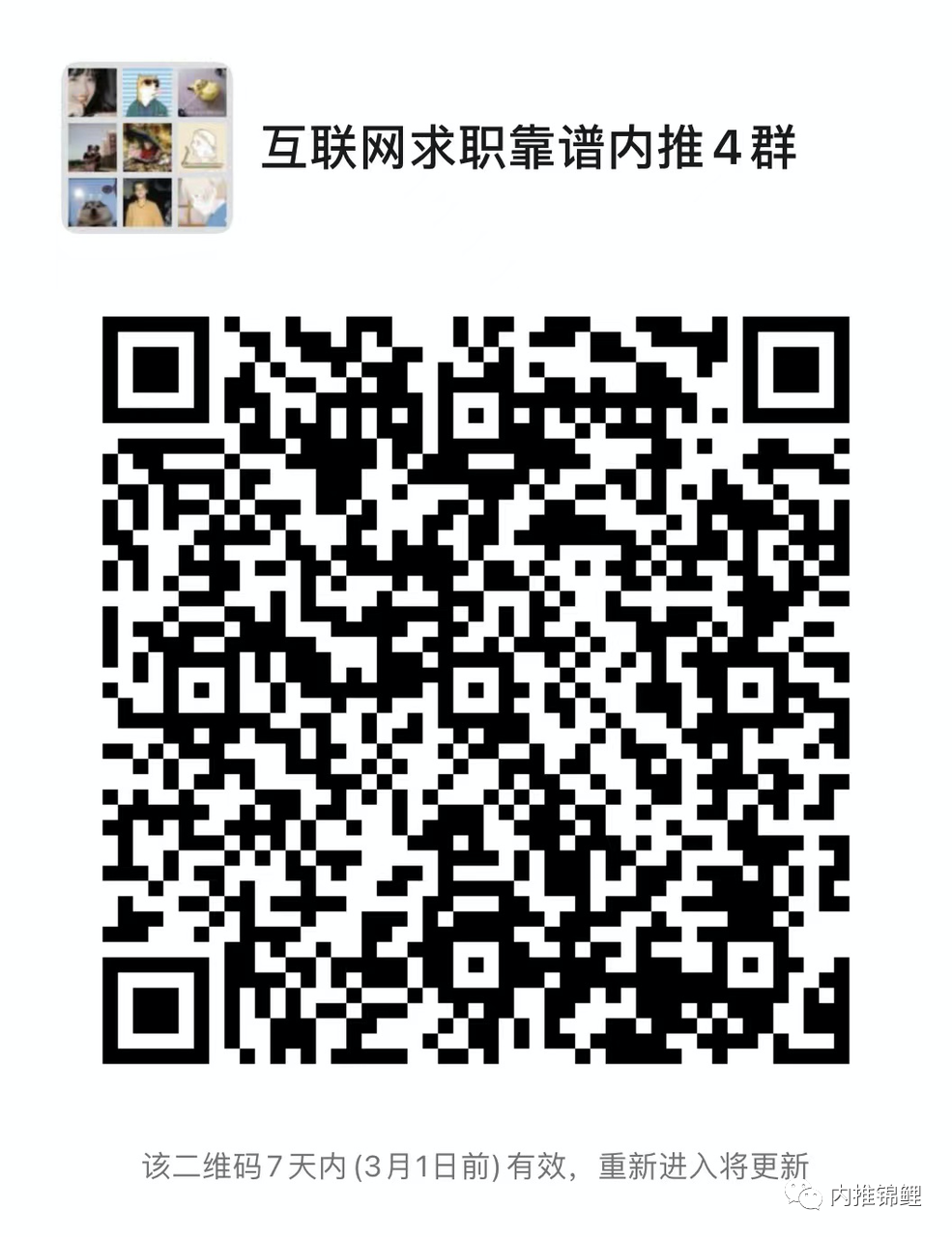 🌟面试流程全程掌握!内推1周无进度更新,扫码进群咨询或添加群主微信备注【进度查询-姓名-岗位】,12小时内回复!