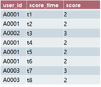 现有一张表score_info记录了一场篮球比赛中各个球员的得分记录,即某个球员userid得分了,就记录该球员的得分时间score_time和得分score。如下表所示。