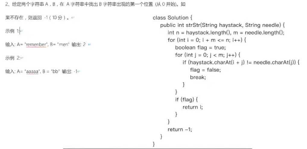 解析:1、磁盘、SSD、内存、寄存器;2、位;3、O(log2(n));4、应用无响应;5、HashMap;前两题是基础概念题。第3题是比较典型的O(nlogn) 算法。第4第5题也属于概念题,就不赘述了。看来填空题都比较简单,这是暴风雨来临前的平静吗?别急,决定差距的地方就要来了,下面我们来看编程题,可是占了近一半的分值!!!