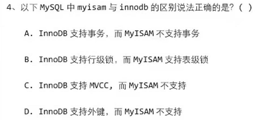 解析4:ABCD,这题考察myISAM和innodb的概念,就不赘述了。