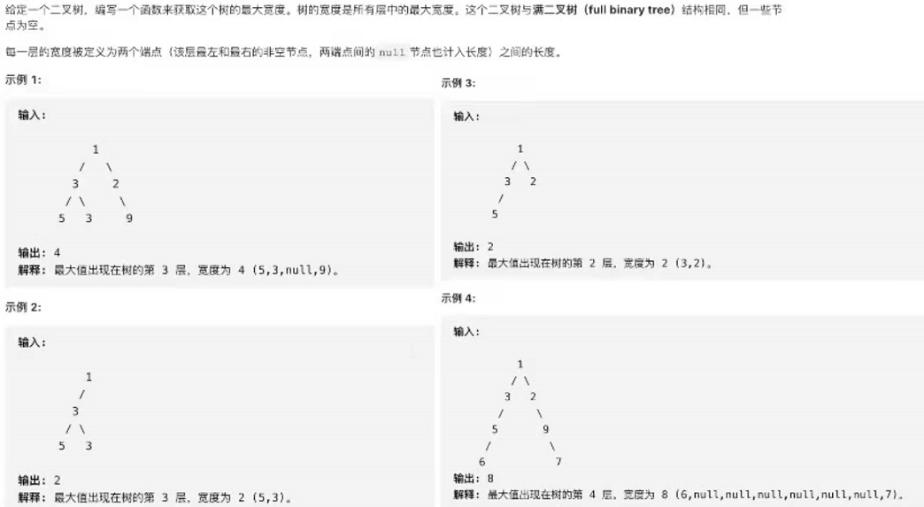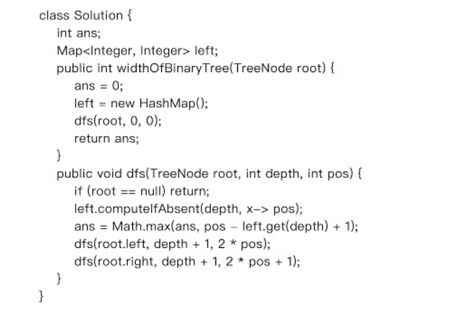解析1:第1题考察字符串的操作,给个思路,可以把各种符号存入HashMap并计数。例如‘(’,读到一次对应‘(’计数器+1,如果读到‘)’则(计数器-1,如果减到负数立马返回false。遍历完整个字符串时HashMap中每个元素都为0时则返回true,否则返回false。解析2:第2题简单处理可以使用暴力匹配,牛逼点可以考虑用KMP,建议大家考试时还是用简单的,不会错。另外如果直接使用String的indexof会不会给分呢?解析3:第3题是动态规划算法的典型应用,定义 dpi 为走到方格 (i,j) 坐标的不同路径的条数,则到这个路径只有两种可能:从上面 (i-1,j) 到该点,或者从左边 (i,j-1) 到该点。解析4:最后一题有两种解法,广度优先和深度优先。个人倾向于深度优先,按照深度优先的顺序,记录每个节点的 position。对于每一个深度,第一个到达的位置会被记录在 left[depth] 中。然后对于每一个节点,它对应这一层的可能宽度是 pos - left[depth] + 1 。最后将每一层这些可能的宽度取一个最大值就是答案。