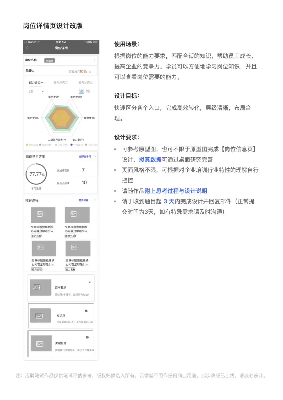 针对设计目标,需要做不同方向上的拆解,让测试题的界面的设计有更好的落地支撑点