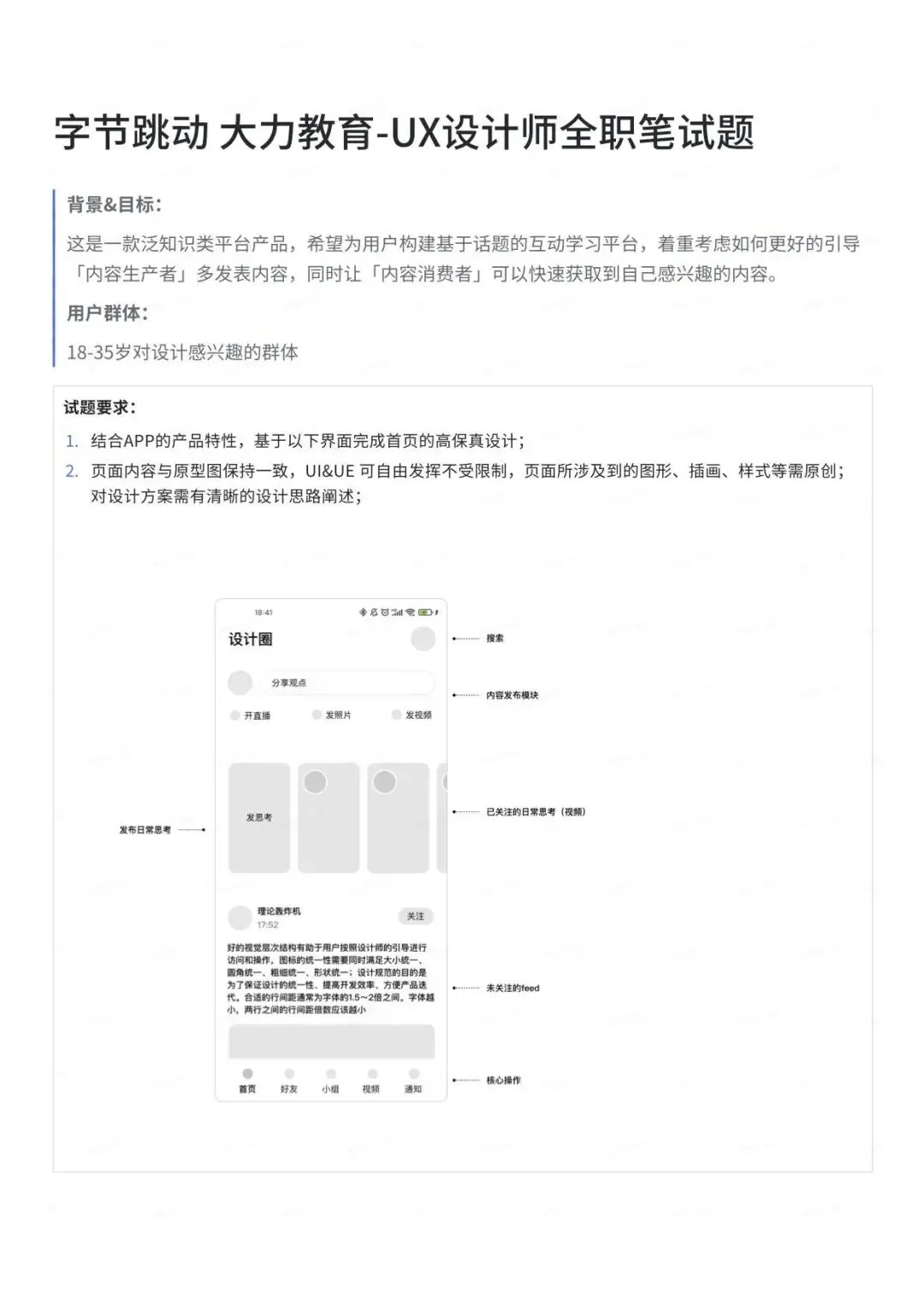 2.考察产品信息流功能细节的理解