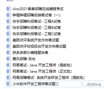 面试题主要是针对1-5年左右的Java开发程序员提升的,不管是传统行业还是互联网行业,掌握这些技术基本都能拿到一个不错的薪资,希望对大家有所帮助。1、哔哩哔哩、快手、美团点评、拼多多、腾讯、网易、小米面试真题12、网易招聘笔试- 系统开发研发工程师(提前批)