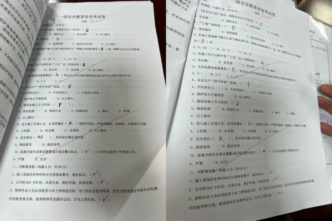 通报一:近日,福建能源监管办在对华电福新周宁抽水蓄能有限公司开展安全风险隐患排查整治专项督导检查中,发现施工单位中国水利水电某工程局有限公司存在安全培训考试成绩记录不真实的违法行为,该公司新入职员工三级安全教育培训考试采取机考模式,2月18日记录的钟某某共11名员工三级安全教育考试机考成绩全部为满分100分,检查组3月8日抽取该项目部上述11名员工进行三级安全教育考试情况复查,现场重新考试后11名员工考试成绩无一人满分,成绩分别为80分、55分、85分、80分、85分、85分、95分、90分、80分、70分、70分。3月8日的抽考试卷内容均属入职人员必须掌握的安全教育知识,大部分内容与2月18日的机考考试内容一致,且从3月8日现场抽考情况看,部分参加考试人员不会使用安全培训机考答题器、不会使用机考系统。