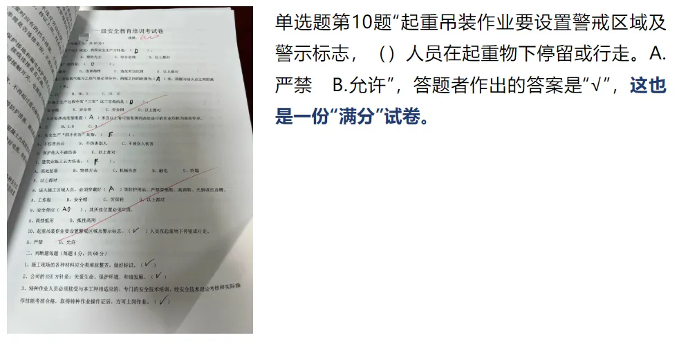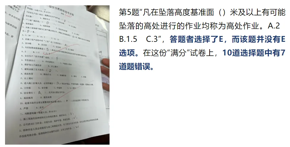 以上情况证实该项目部2月18日上述11人三级安全教育考试机考成绩全部为100分的记录不真实,存在弄虚作假行为。