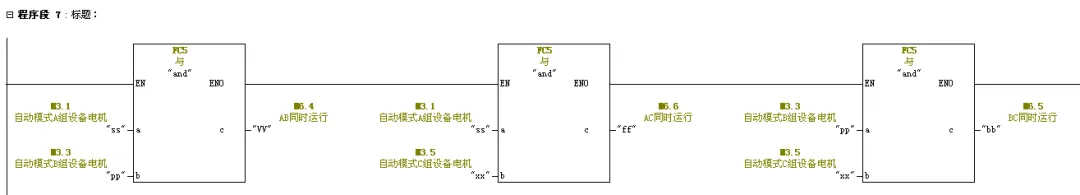4、编辑FC2自动程序,从FC2中调用FC3三次,赋值绝对地址。加入自动连锁启停程序。