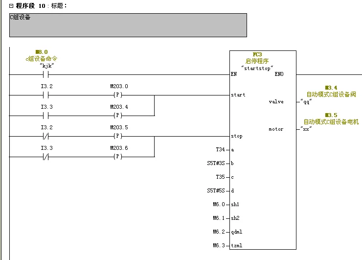 4、在FC3中编写阀与电机延时启停程序。