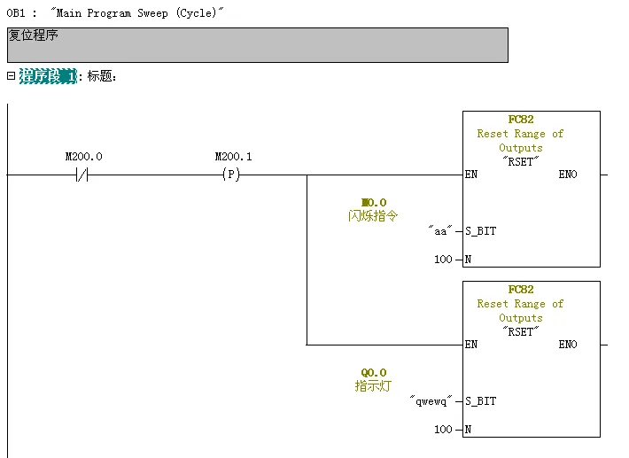(1)编辑复位程序:PLC上电初始化程序,M区与Q区全部为0.调用FC82.(4)编辑输出指示灯,会使用中间继电器代替法。
