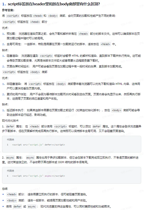 1. script标签放在header里和放在body底部里有什么区别?