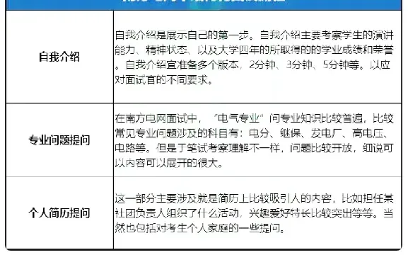 电力电网系统面试开始就是自我介绍,包括家庭情况,兴趣爱好。