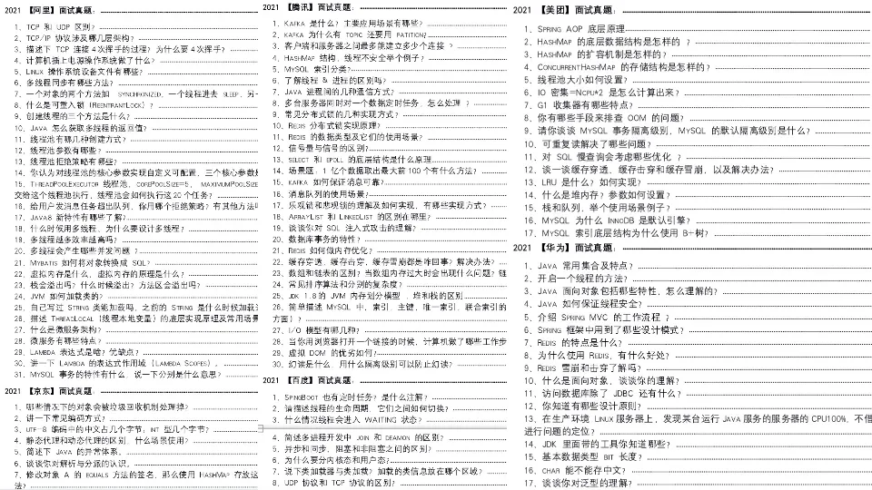 那咋办?只有学呗,不管是在什么时候,做题,都是最好的学习方法之一。而不得不承认,大厂面试真题,很多时候,就是该技术领域最经典的基础知识和套路合集,非常值得一刷。