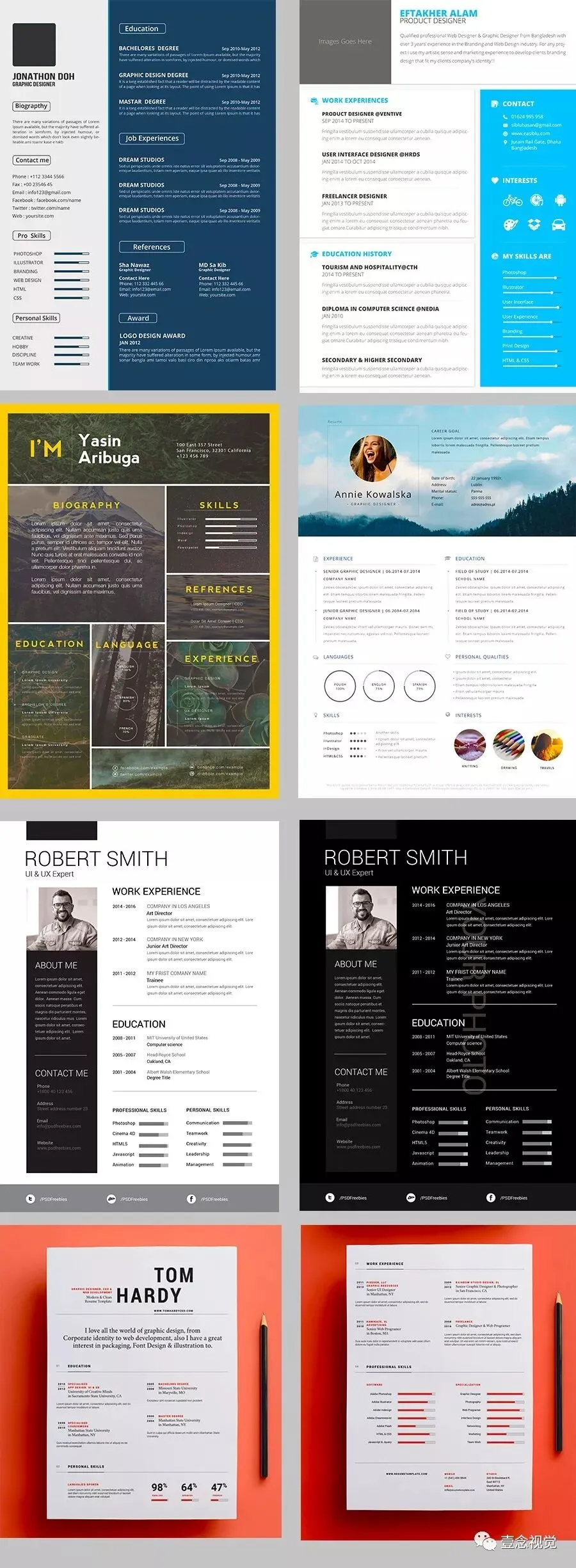 1、18套优质PSD创意简历