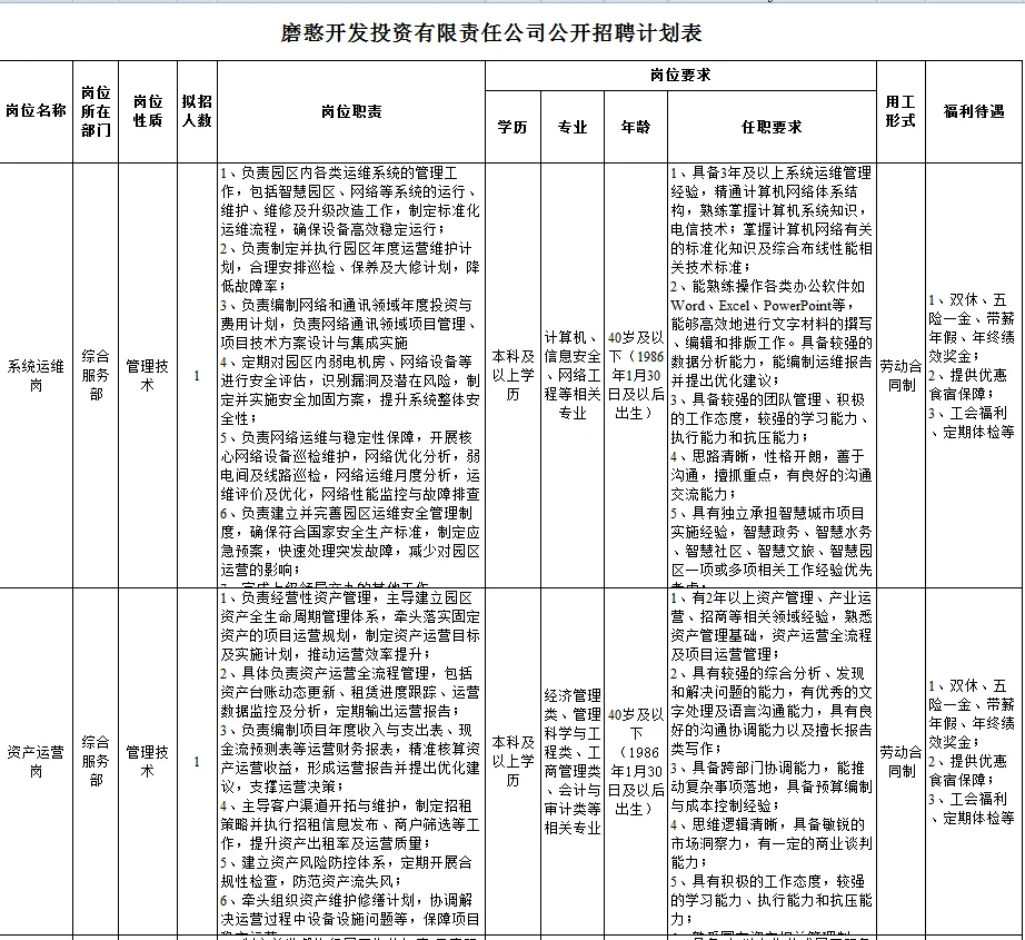 本次公开招聘5个岗位5人。其中系统运维岗1人、资产运营岗1人、园区物业岗1人、综合服务岗1人、项目管理岗1人。