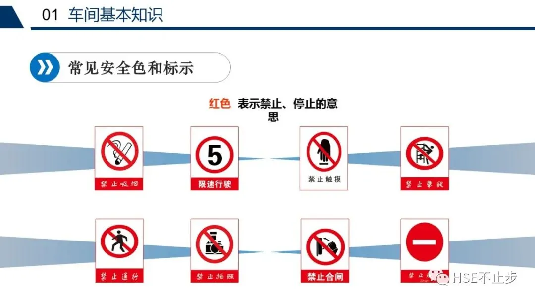 红色:很醒目,使人们在心理上产生兴奋性和刺激性,红色光光波较长,不易被尘雾所散射,在较远的地方也容易辨认,红色的注目性高,视认性也很好。所以用来表示危险、禁止、停止。用于禁止标志。机器设备上的紧急停止手柄或按扭以及禁止触动的部位通常用红色,有时也表示防火;