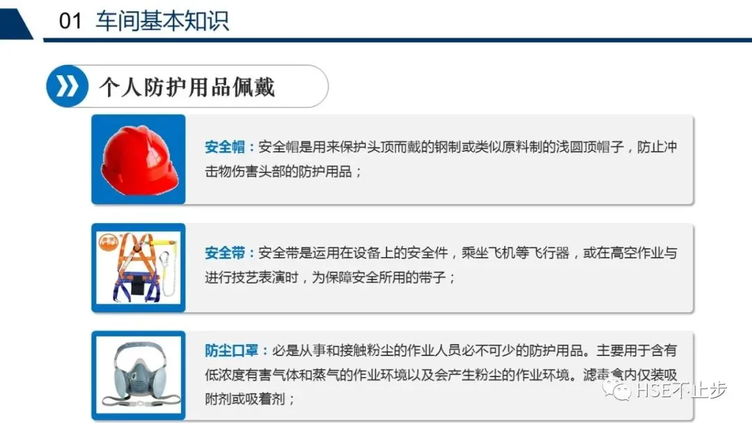 ①要按规定穿戴防护用品。如穿软底鞋、戴安全帽、系安全带;安全带应高挂低用,不能穿皮鞋或塑料硬底鞋作业;