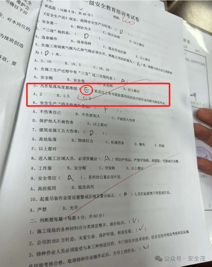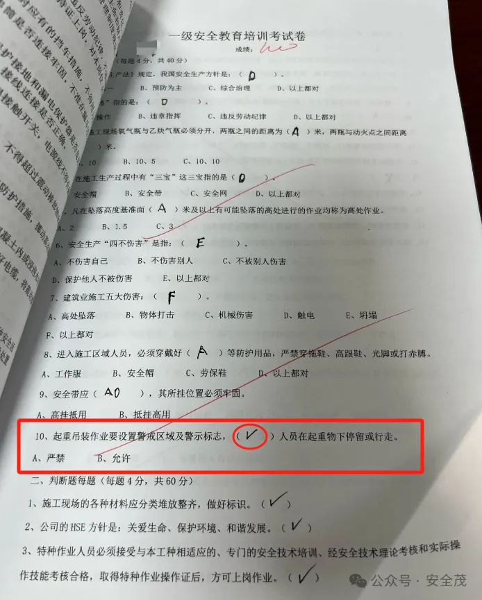 这家央企,这份安全试卷没有E选项,却选出了E,这个罚10万,不冤枉吧!