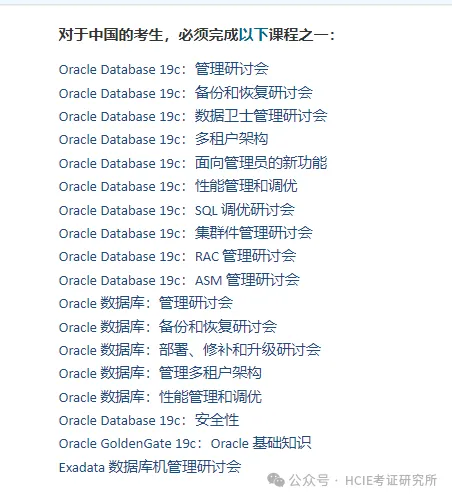 OCP认证考试并非单纯的理论考试,而是通过实际操作来检验考生在实际工作中解决问题的能力。考试通过后,你将能够证明自己具备在企业环境中应对复杂数据库问题的能力。OCP考试的费用因地区和考试科目不同有所变化,但大致的费用范围如下:一般情况下,OCP考试的费用折算成人民币大约为3000+元。费用可能会随着Oracle的政策调整而有所变化,具体费用可以参考Oracle官网或认证考试机构的报价。培训费用:Oracle要培训才能参加考试,这些课程将帮助你更好地准备OCP考试。培训费用因课程类型和地区不同而有所不同,通常在3000+元之间。如果你计划参加OCP的多个考试科目,则需要为每个科目的考试支付相应的费用,因此在报考之前,要做好费用预算。OCP认证的报考条件相对简单,但也有一些要求,具体如下:一定的工作经验(不是必须):对于一些科目,Oracle要求考生具备一定的工作经验,尤其是在数据库管理、优化、故障排除等方面的实践经验。虽然Oracle没有强制要求工作年限,但如果你能够结合实际工作经验来学习和备考,必定能够提升考试通过率。知识要求(不是必须):考生需要具备一定的数据库基础知识,尤其是掌握SQL和数据库管理的基础内容。如果你已经有一定的数据库基础,OCA考试将是你顺利过渡到OCP的基础。OCP证书不会过期,OCP证书是没有有效期的,考取之后可以永久拥有,不过,OCP认证是按Oracle版本来的。比如Oracle 8i OCP,9i OCP,10g OCP,11g OCP,OCP 12c,OCP 19c。如果当版本升级后,你还拿一个旧版本的OCP,就不是很合适了,不过可以进行升级到最新版本。所以当认证的版本升级之后,就需要进行重认证以考取更高级版本OCP证书,重认证只需要重新报名参加考试,通过考试就可以完成重认证了。好了,以上就是给大家介绍的OCP认证考试指南及考试费用的攻略。想要了解更多数据库认证信息,又或是数据库考证资讯和备考指南?CISP | CISSP | ITIL® | ITSS