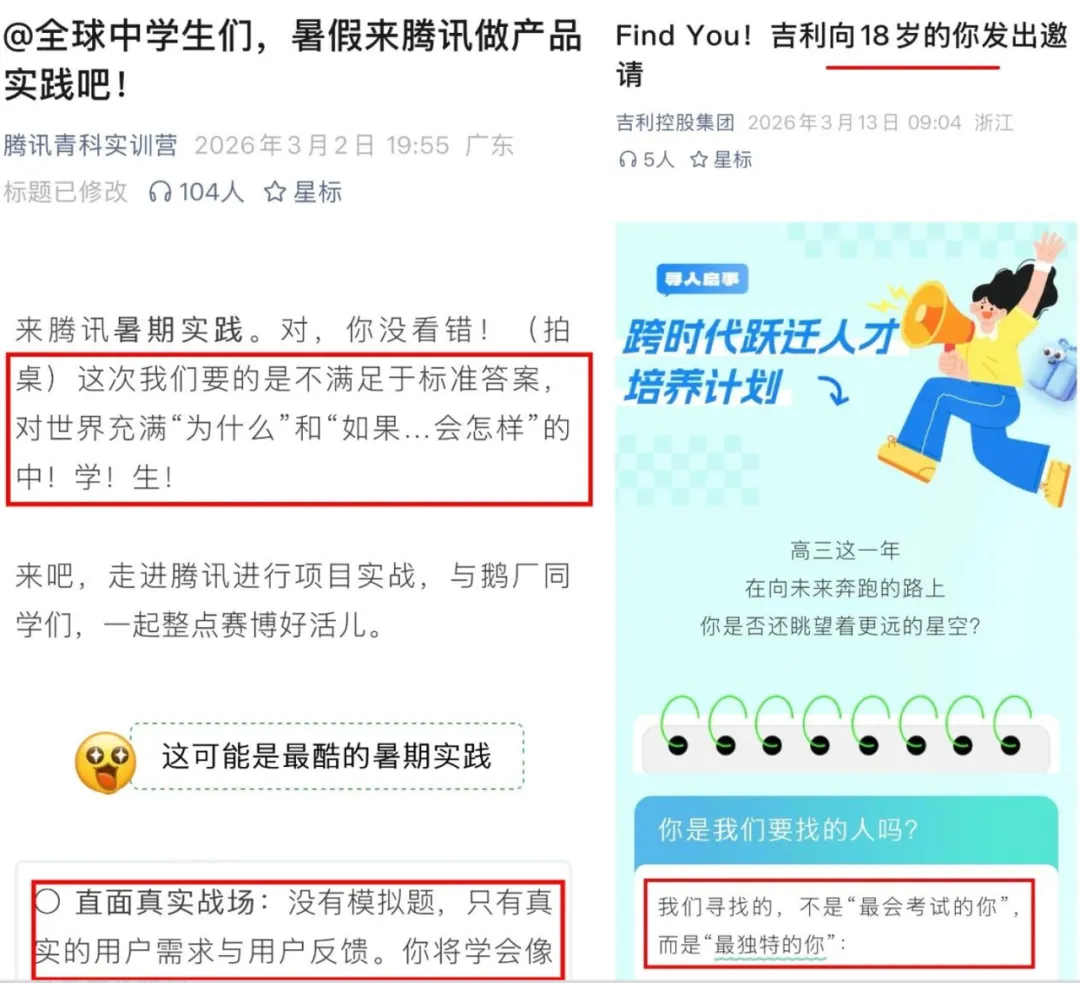 很多人以为,大厂招中学生,就是搞搞噱头、办个夏令营,走个过场而已。但我告诉你,人家是来真的,诚意直接拉满,甚至比招大学生还走心。