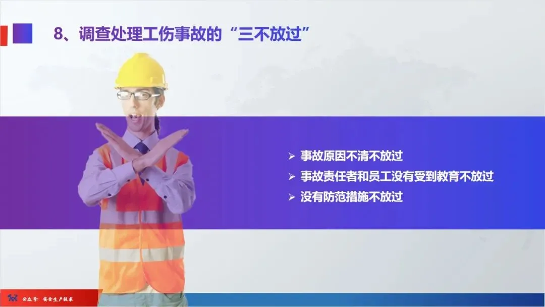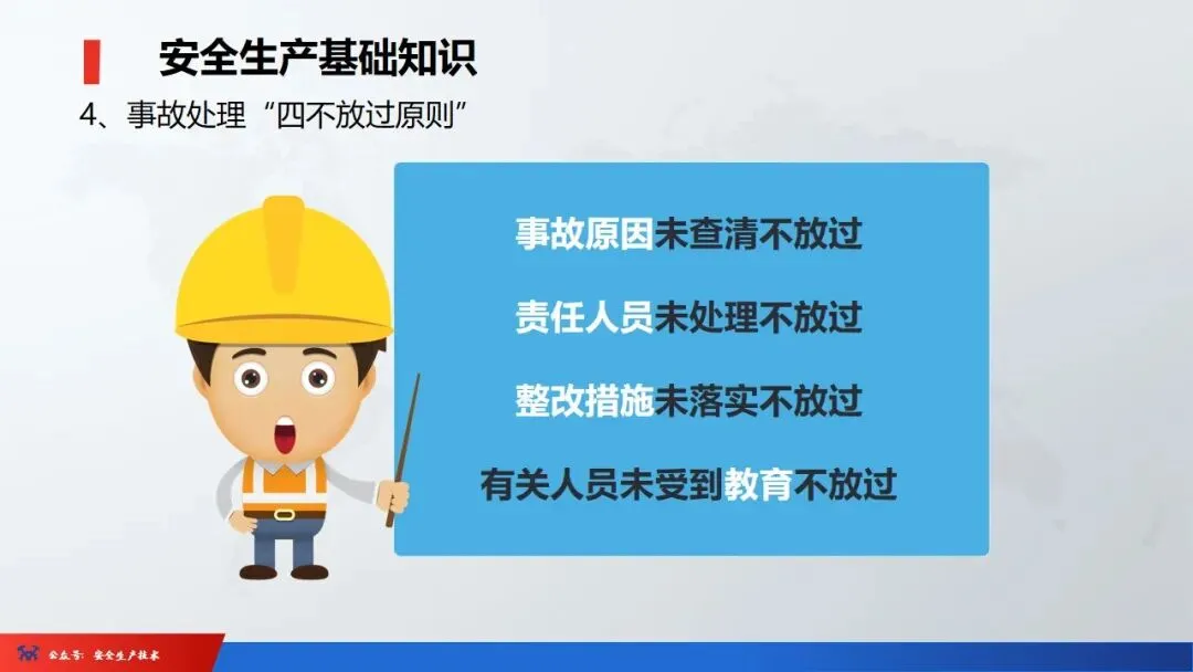 7、安全生产事故处理“四不放过”原则:即事故原因没有查清不放过,事故责任者没有得到严肃处理不放过,广大职工没有受到教育不放过,防护措施没有得到落实不放过。