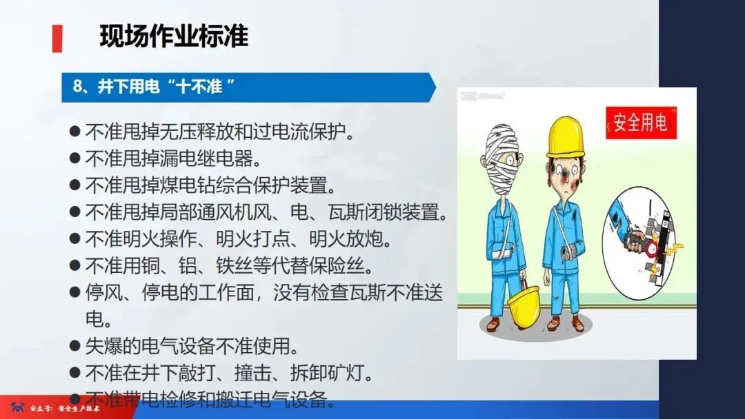 8、在生产中必须做到“五同时”:即在计划、布置、检查、总结、评比生产的同时必须计划、布置、检查、总结、评比安全工作。